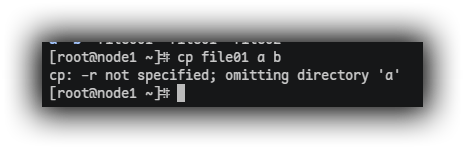在通过一个命令复制多个文件时, 最后一个参数必须为目录。默认情况下, cp 不复制目录, 而会忽略它们。