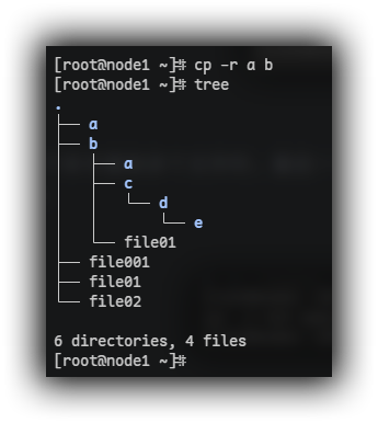 注意: 如果目标文件已存在, 则 cp 命令会覆盖该文件。