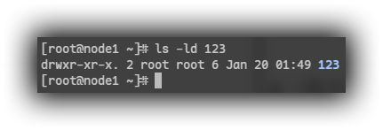 drwxr-xr-x. 2 root root 6 Jan 20 01:49 123/