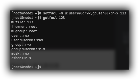 1 | setfacl -m(修改) u:用户名:权限,g:组名:权限 目录/文件 |
