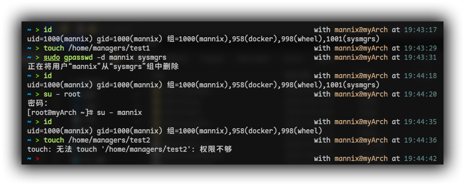 1 | groupadd sysmgrs // 新建组sysmgrs |