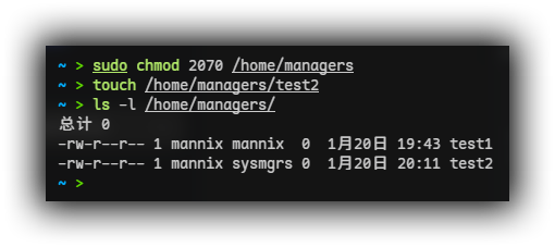 /home/managers 中创建的文件自动将组所有权设置到 sysmgrs 组